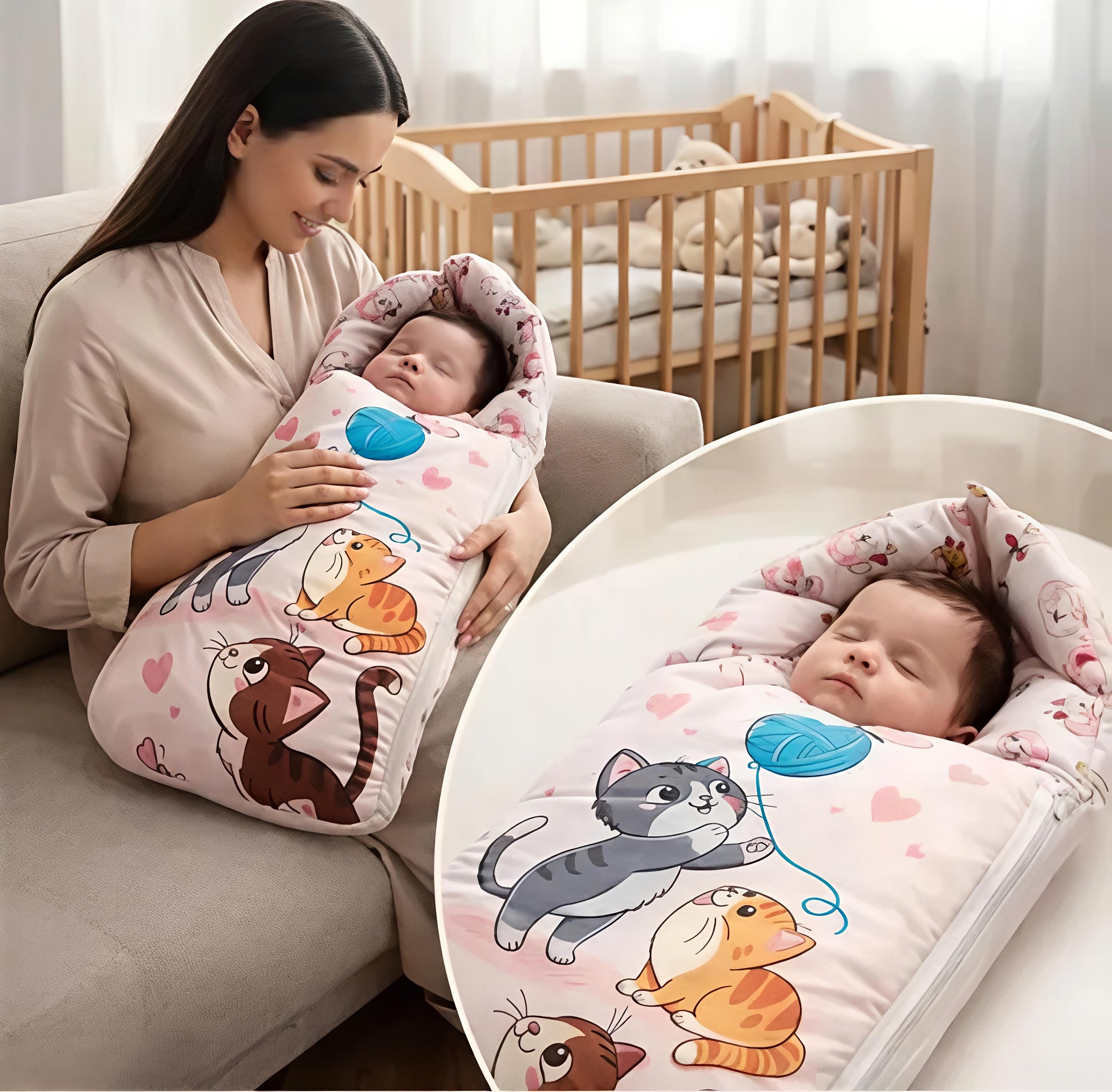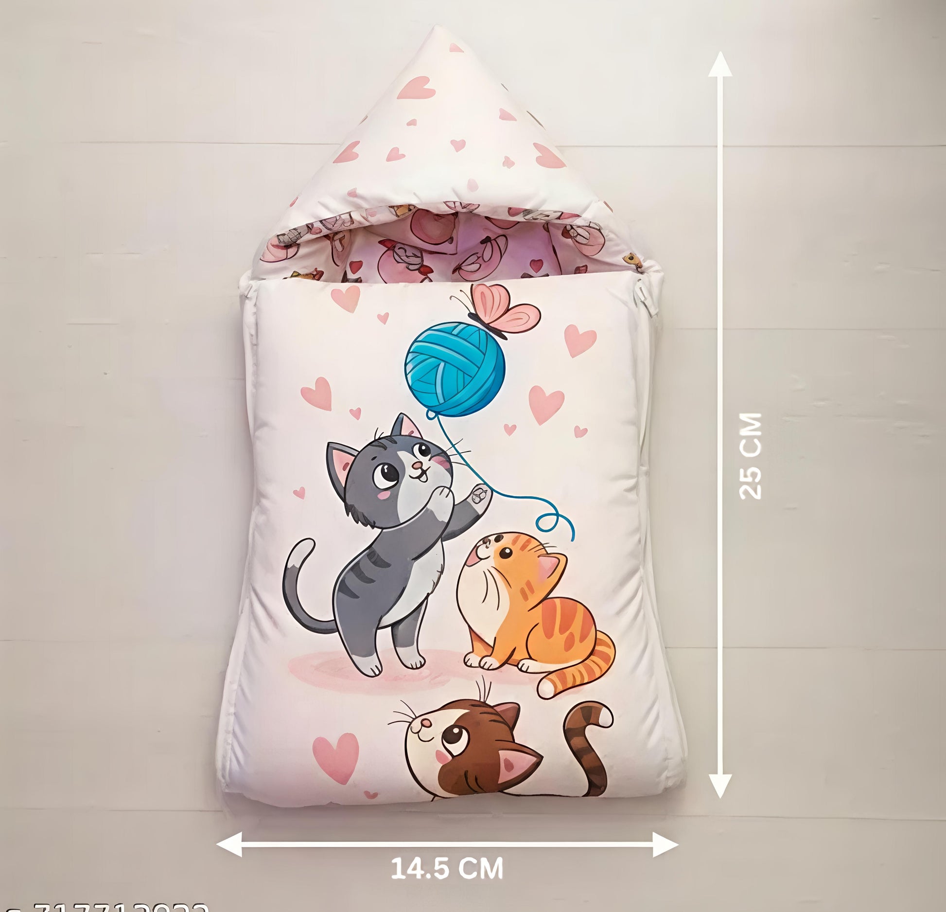 Baby Cotton Sleeping Bag cum Bed – Soft Printed Fabric, Foldable Design, Zipper Closure, Cute Cat Print (0–12 Months)