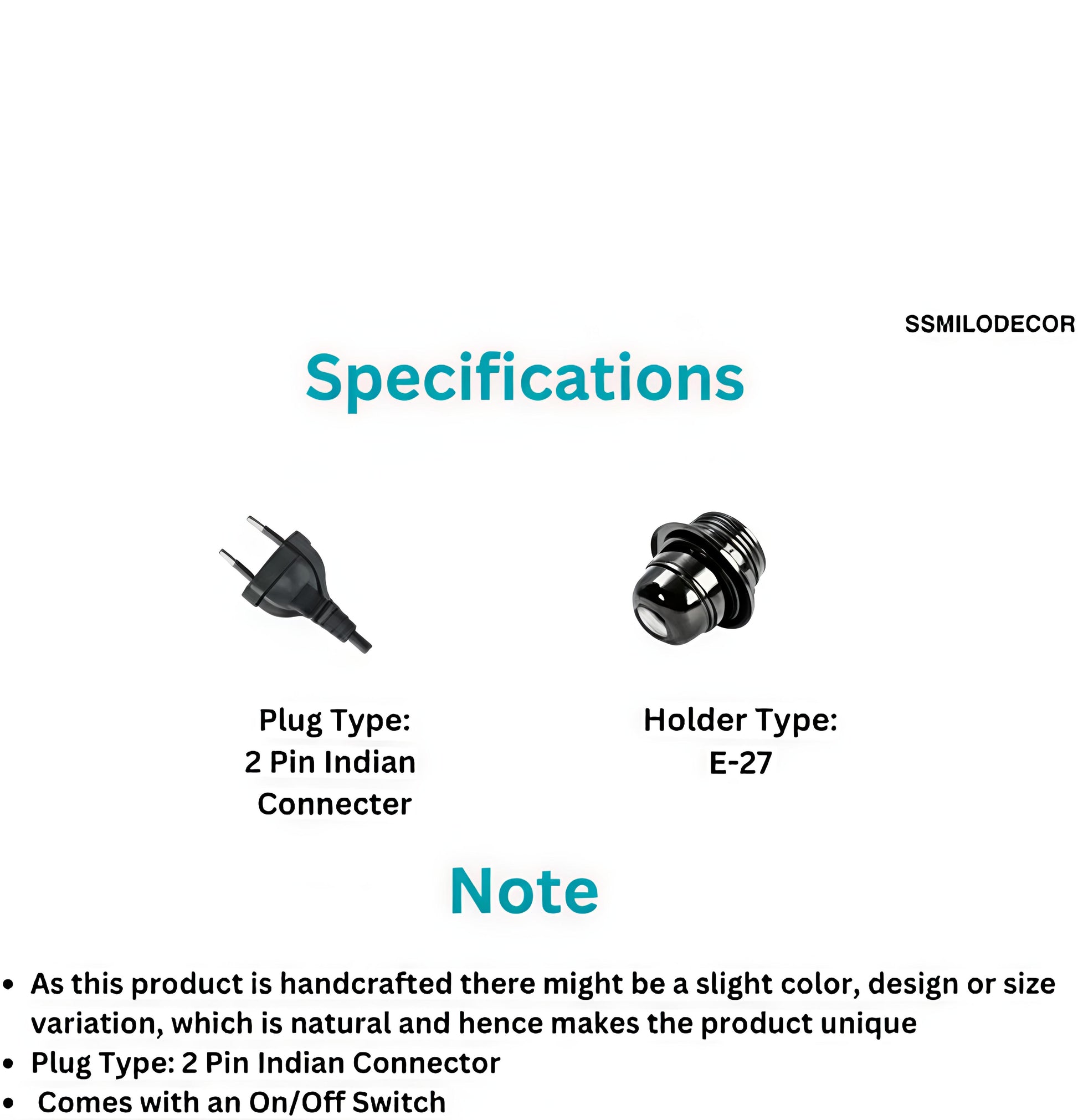 - ๐ 2-Pin Indian plug with on/off switch
