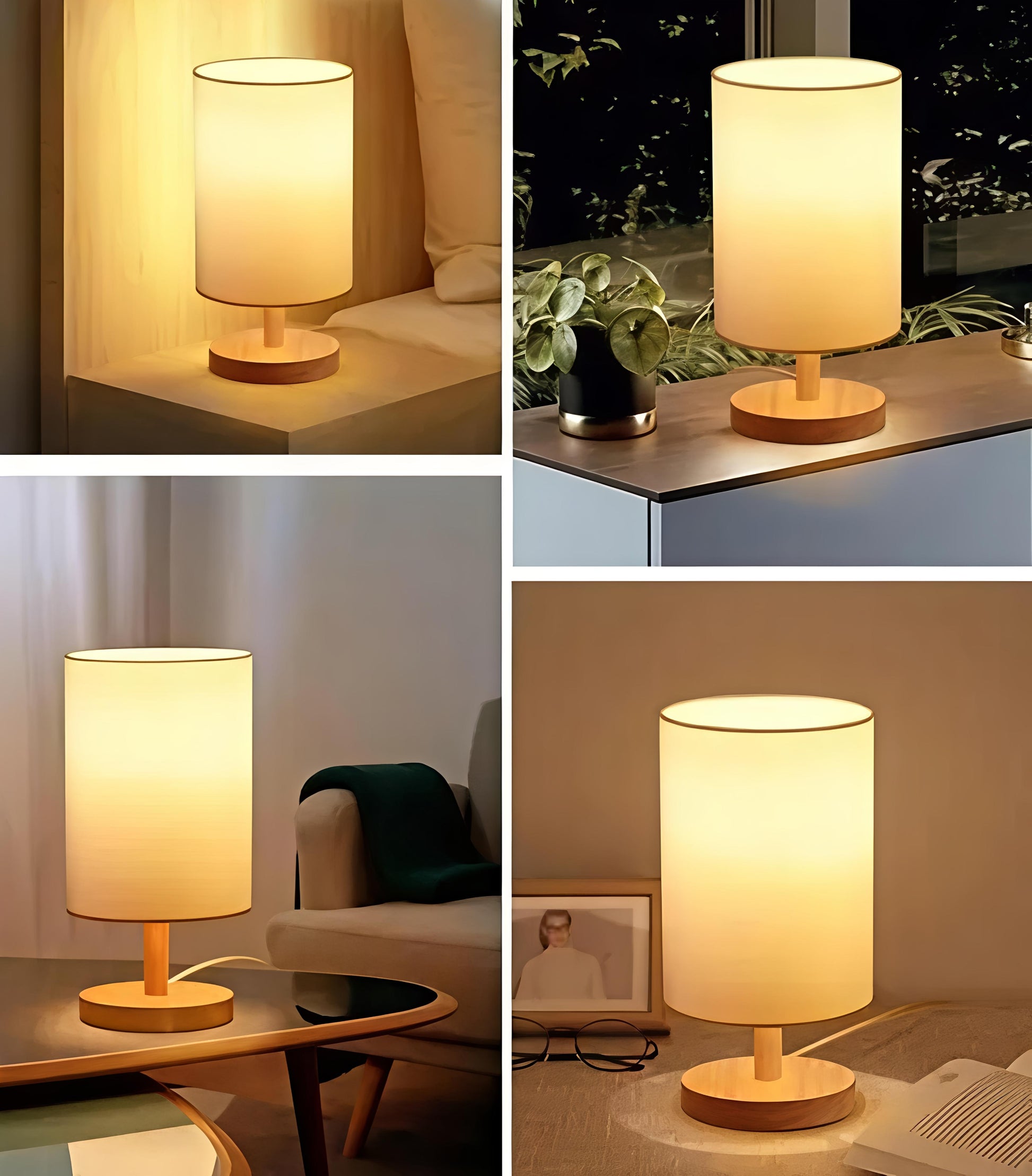 Designed with a natural wooden base and a soft fabric shade, this lamp creates a soothing warm glow that’s perfect for relaxing evenings.